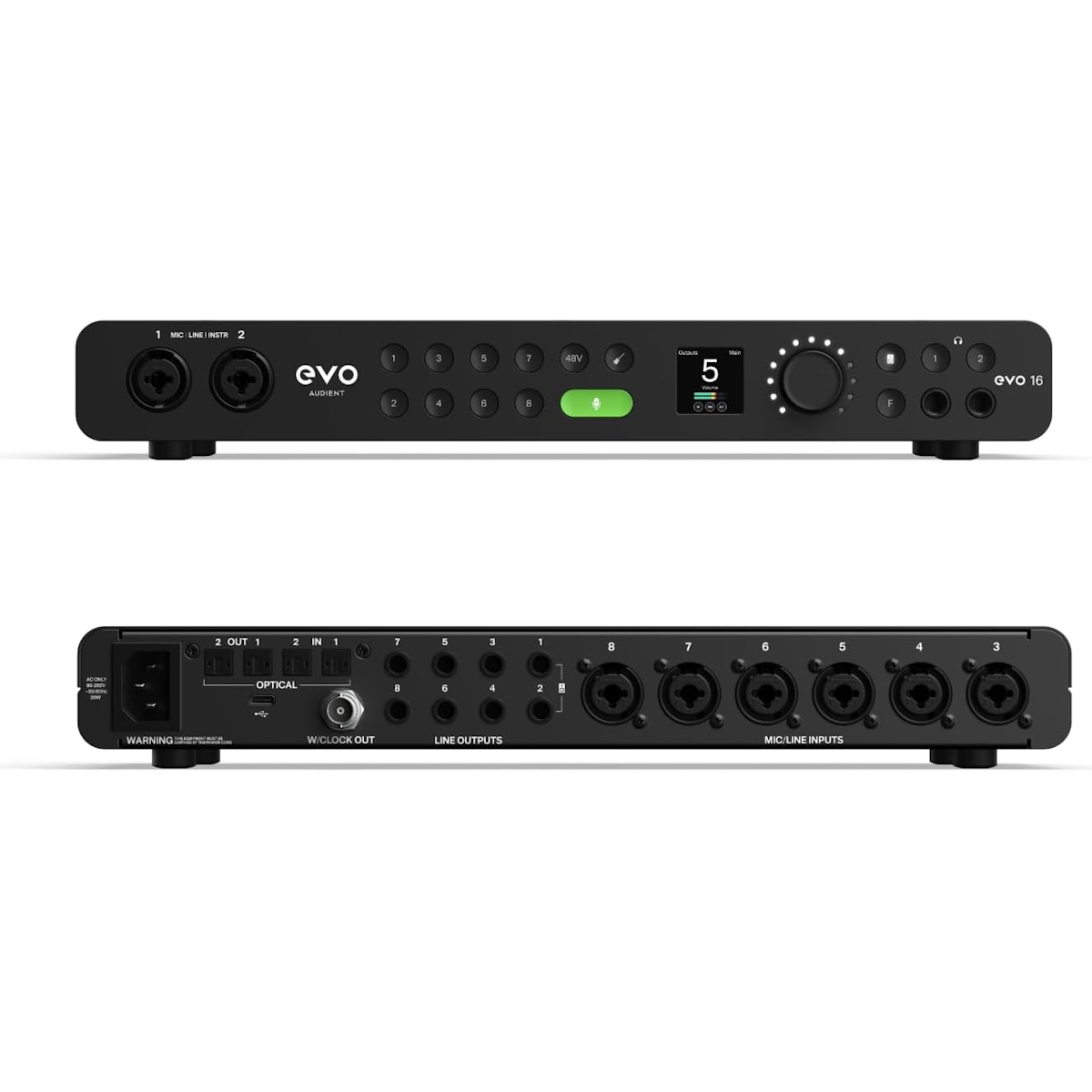 - 8 Preamplificadores de Micrófono EVO: Disfruta de una calidad de audio impecable con 58dB de ganancia.