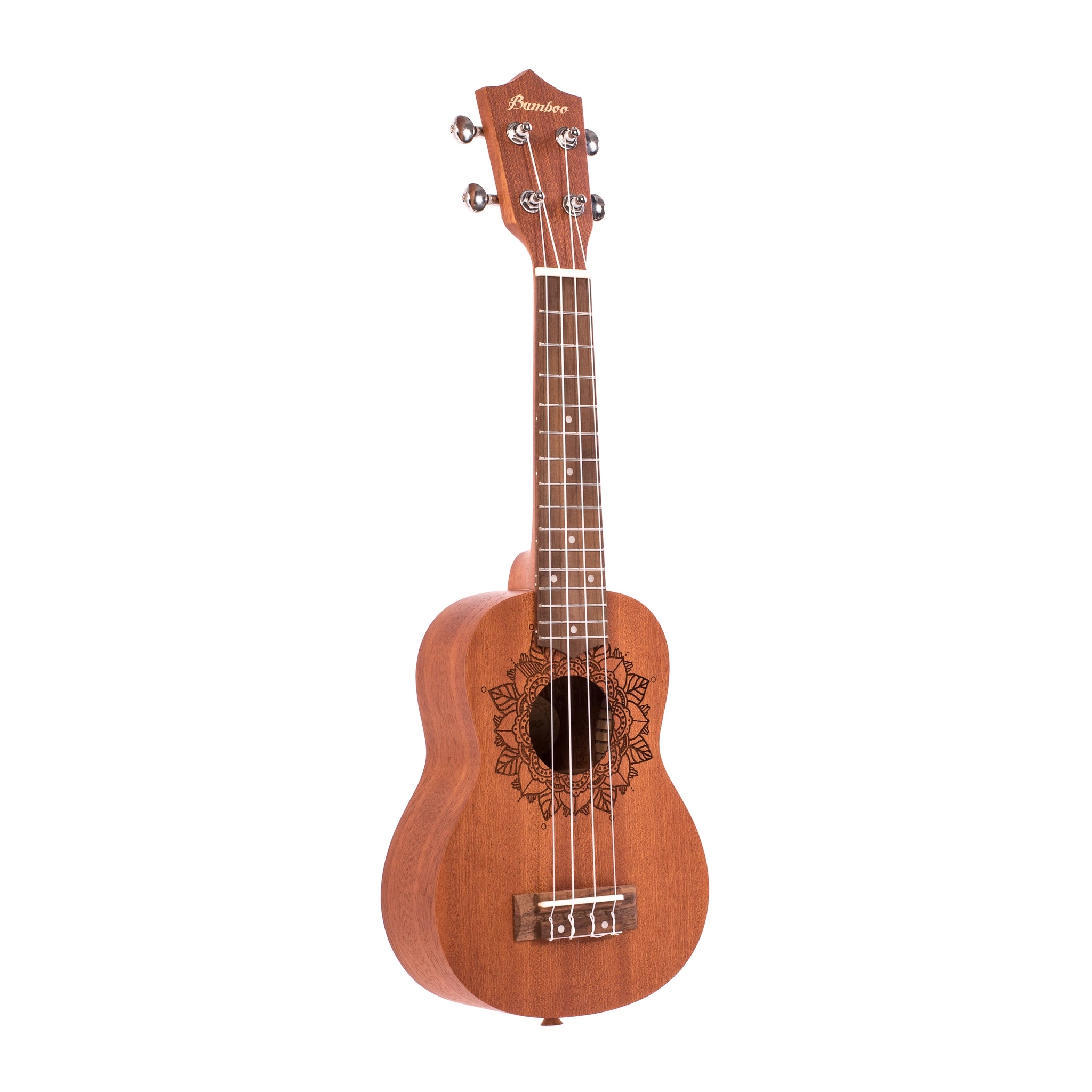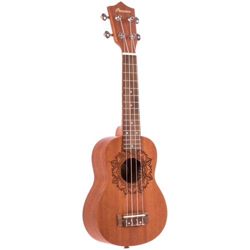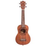 Ukelele Soprano. Tapa, aro y fondo: Sapele. Clavijas: blindadas. Cuerdas: Aquila. Incluye funda acolchada.
