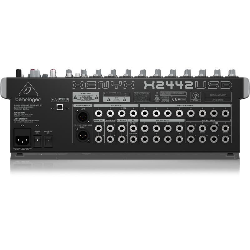 BEHRINGER® X2442USB Mezcladora Análoga de 24 Canales + Interfaz USB c/FX
