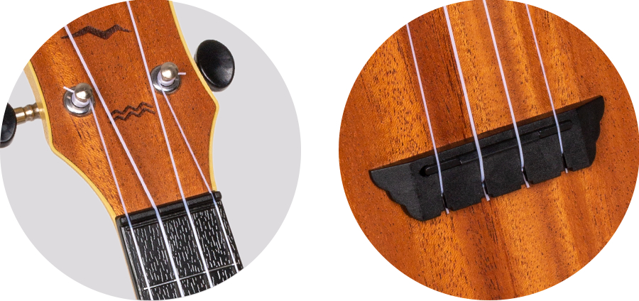 Nuestros ukeleles de viaje utilizan un traste cero y una montura ajustable, lo que mantiene la acción de las cuerdas baja y la entonación en el punto. Dado que un plástico no reacciona a las condiciones climáticas como un ukelele de madera, nunca debería tener que lidiar con ningún ajuste futuro del sillín.