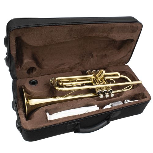 Trompeta en Si Bemol (Bb) Terminado Laqueado Popular. Incluye Estuche Ligero, Paño de Limpieza, Par de Guantes, Válvula de Aceite y Una Boquilla.