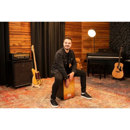 Cajón flamenco con cuerpo de fibra de densidad media amigable con el medio ambiente y tapa de maple, ancho: 11 3/4″, altura: 18″, profundidad: 11 3/4″. Color Sonoran Amber Fade