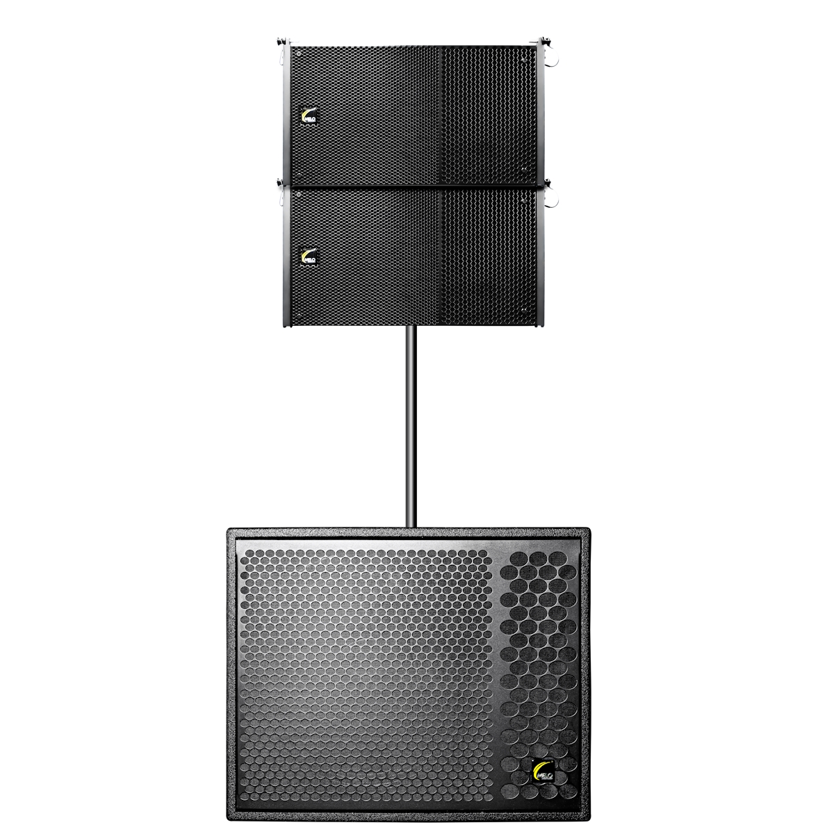 - Incluye Pole Mount para montaje sobre tripie o subwoofer