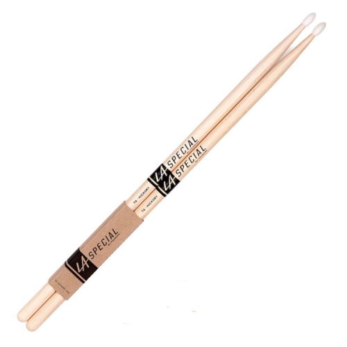 Baquetas para Batería 7A de Hickory Serie LA Special. Punta de Nylon en Forma Ovalada.
