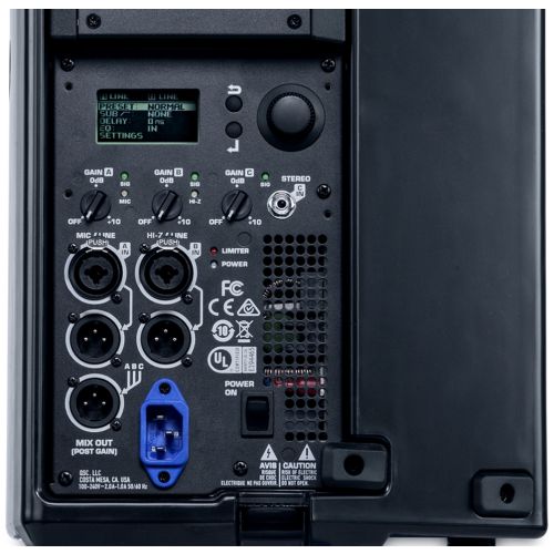 - Pantalla digital multifunción para el control y selección de las funciones del altavoz, incluyendo el divisor de frecuencias, EQ, delay y contorno de frecuencias