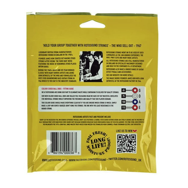 ROTOSOUND® Tru Bass 88 RS88LD Encordadura Para Bajo Eléctrico De 4 Cuerdas Calibre .065 -.115