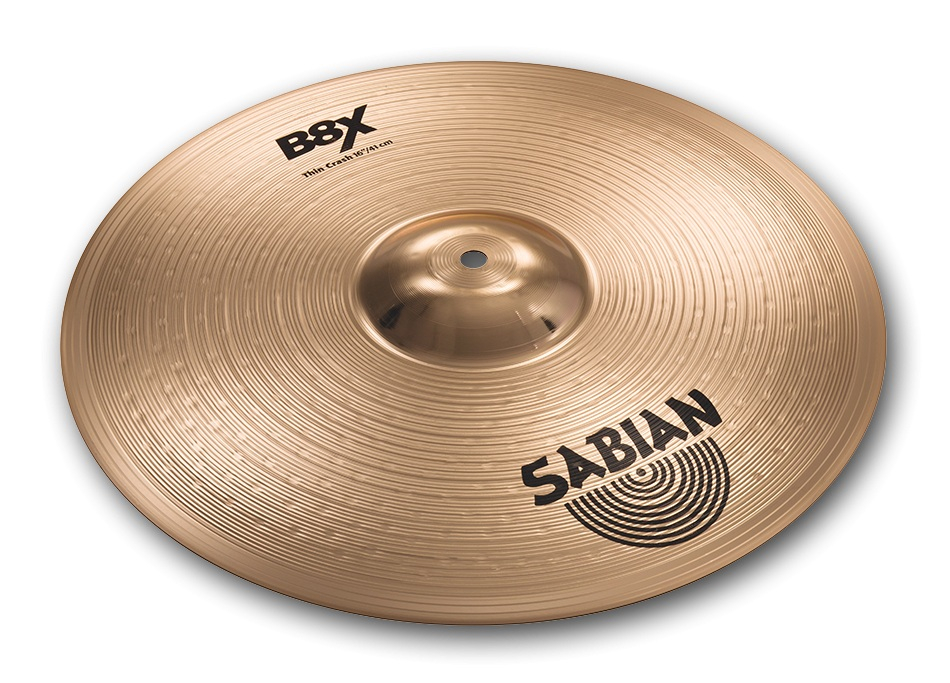 - 16″ B8X THIN CRASH: Un ataque rápido, contundente, brillante y fuerte hace que esto sea un choque cortante